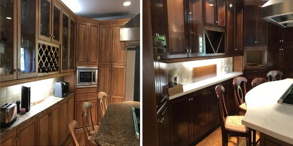Are you tired of old honey oak look of your cabinets? we will stain your cabinet to turn your old kitchen cabinet to luxurious traditional look.